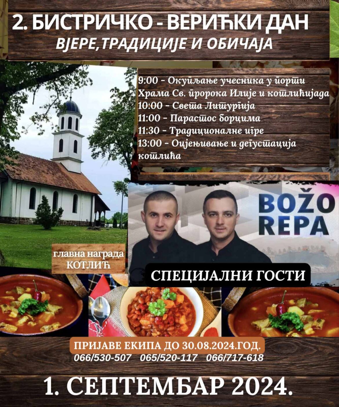 Srpska pravoslavna parohija Bistrica-Verići, Udruženje građana “Kozarčani” i Udruženje građana “Verićani” organizuju Bistričko-Verićke dane vjere, tradicije i običaja, koji će se održati u nedjelju, 1. septembra, u porti hrama Svetog proroka Ilije u Bistrici kod Prijedora.