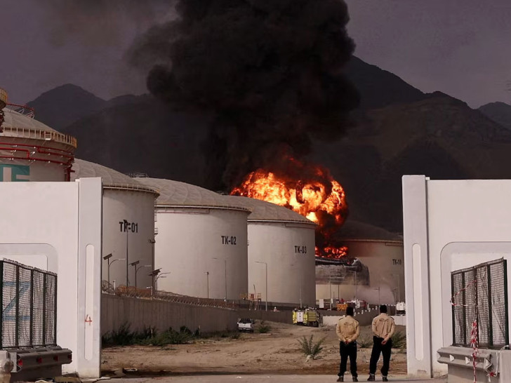 Omanska protivvazdušna odbrana presrjela je nekoliko dronova, ali je jedan, nažalost, uspio da pogodi rezervoare, što je izazvalo značajne požare i oštetilo skladišnu infrastrukturu.